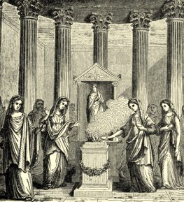 Una de les dades més curioses de la història antiga envers l’amiant, és la que varen deixar per a la posterioritat en Plutarco ( 46-50 d.c. – 120 d.c.) i almenys tres autors grecs més, tots ells van afirmar que la flama eterna que es guardava permanentment encesa dins el temple de la deessa Vesta era d’amiant.